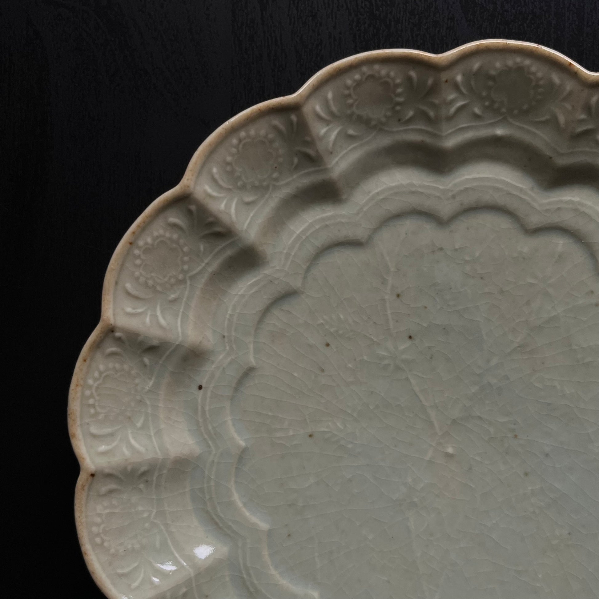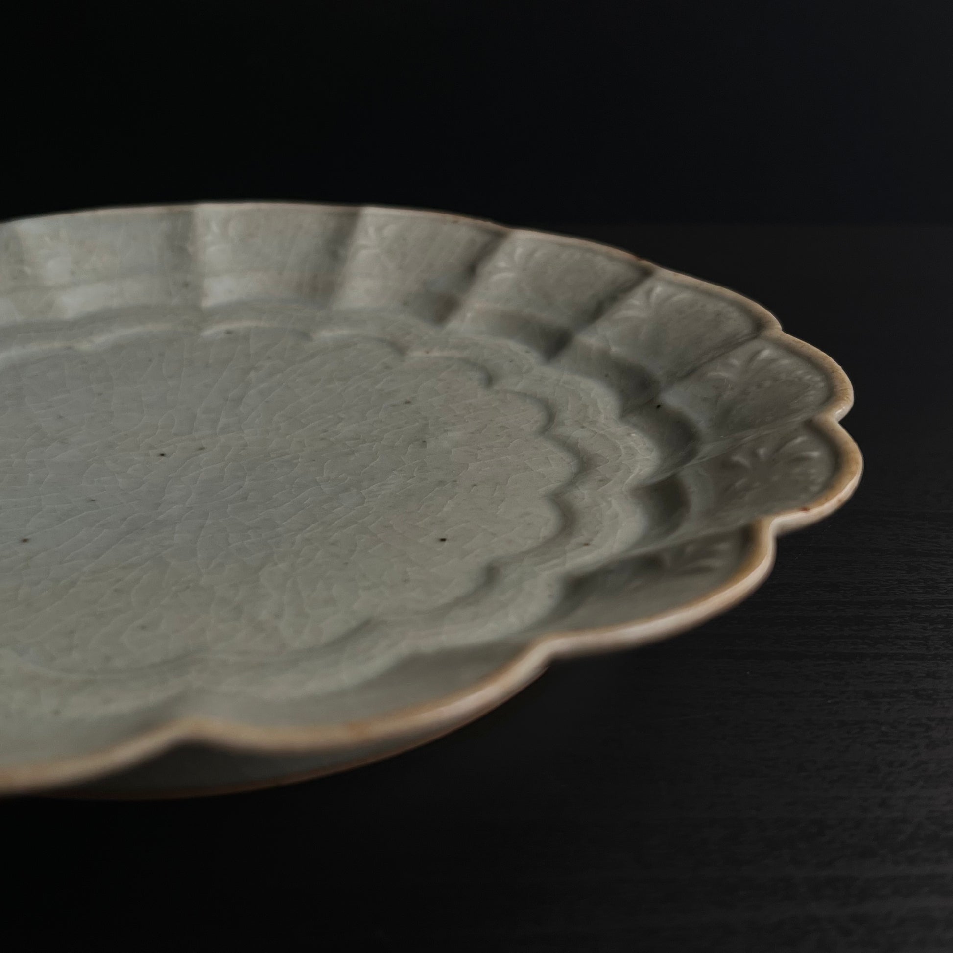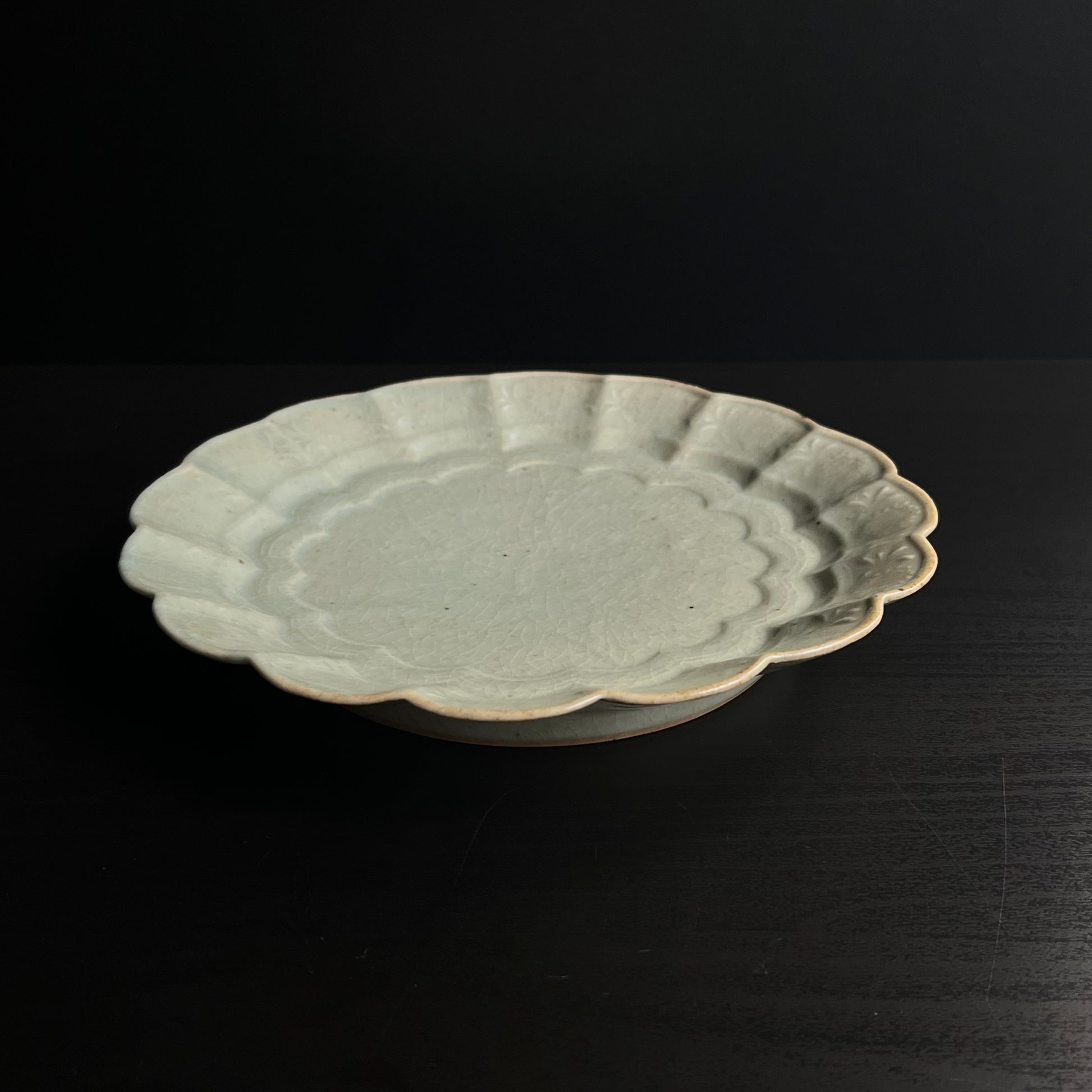 青磁花文菊平皿(大)