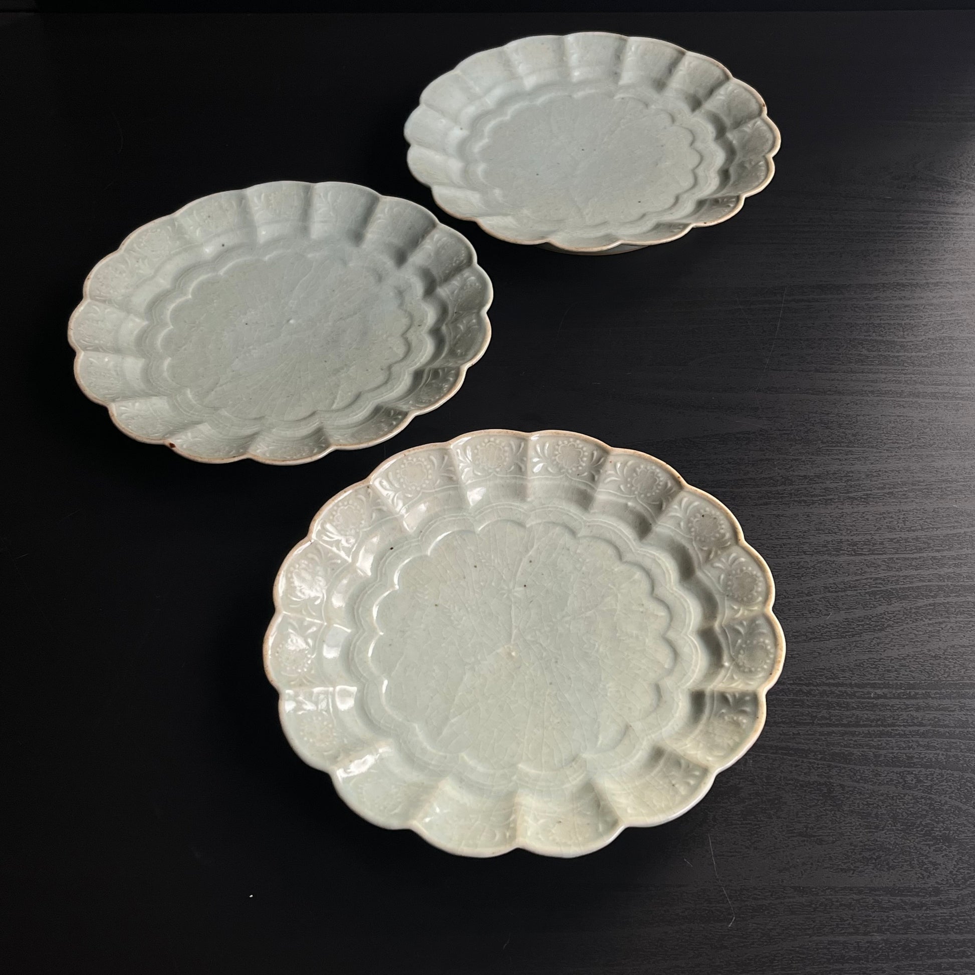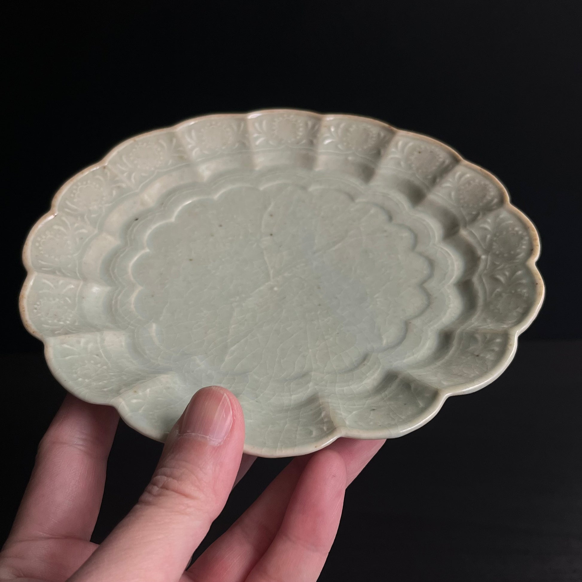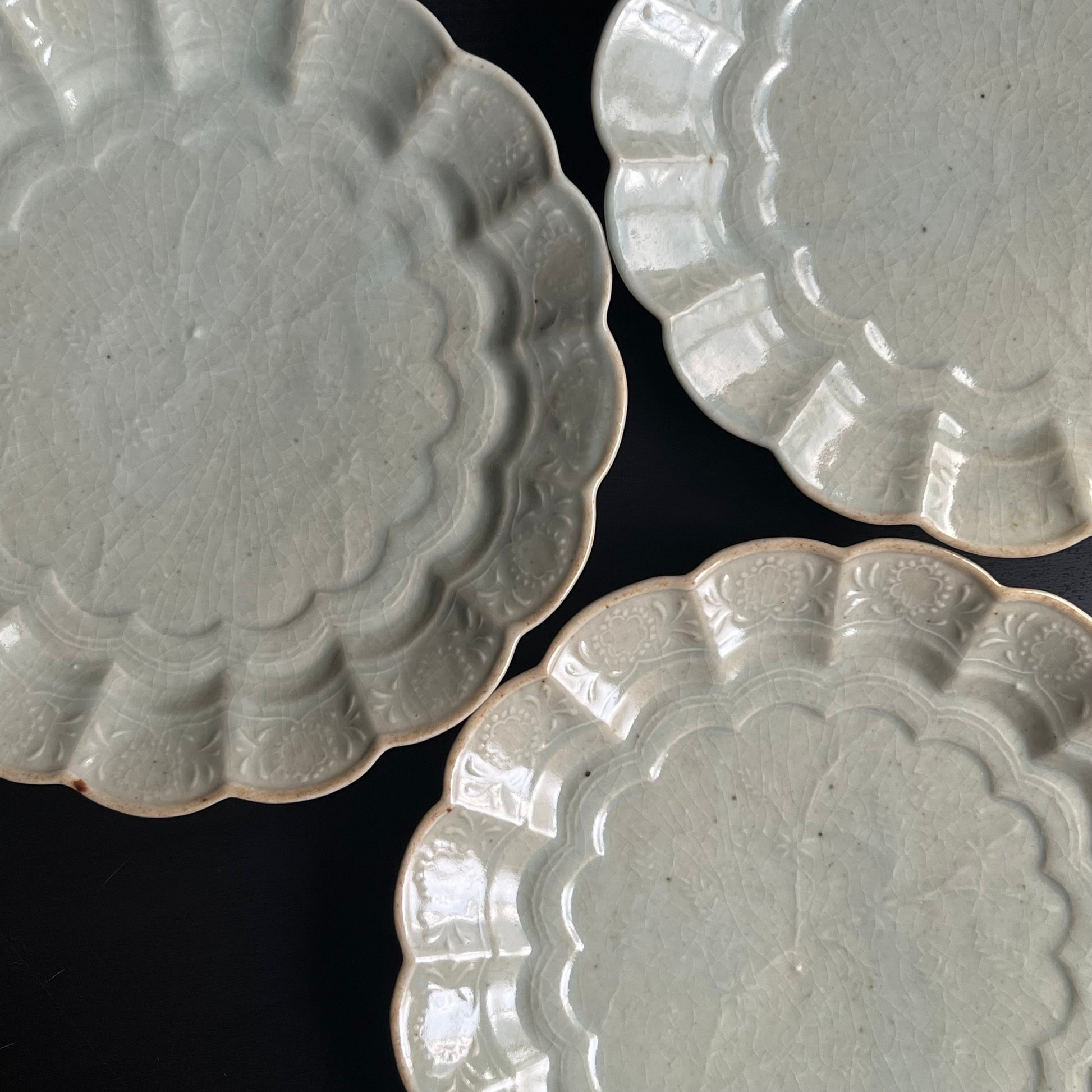 青磁花文菊平皿(大)