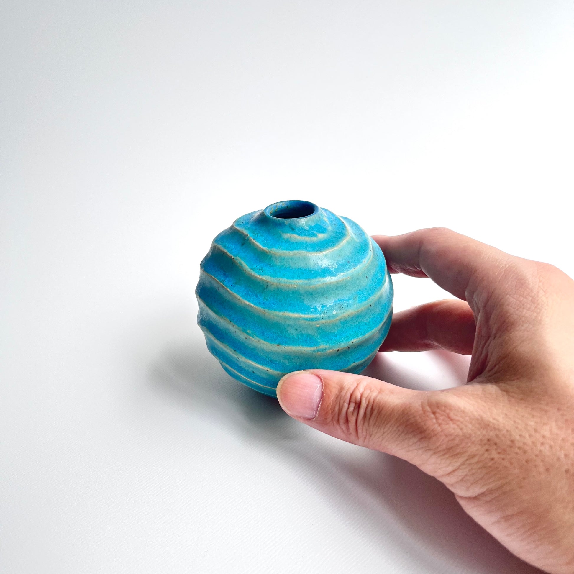 トルコ釉シノギ一輪挿 ⑥
