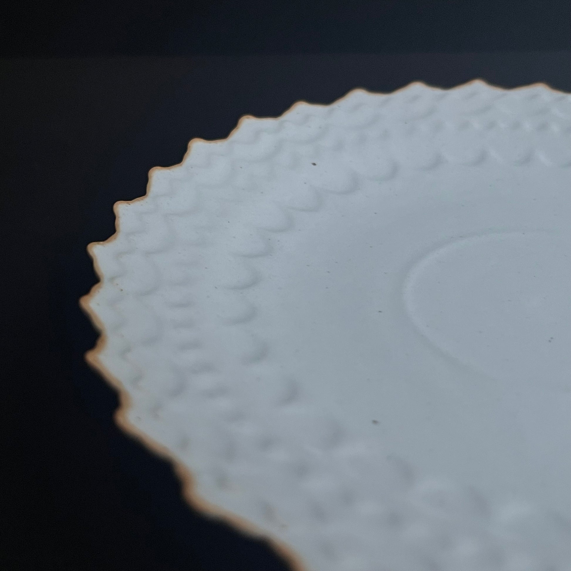 ろくろで挽いたものを型にはめて模様を写しとる「ろくろ型打ち」を得意とする。